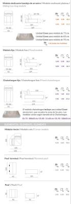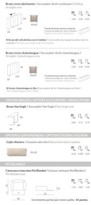 - Dimensions avec des modules assise coulissante de plusieurs largeurs au choix, une méridienne, du module d'angle, etc... Des modèles d'accoudoirs à choisir avec des largeurs différentes