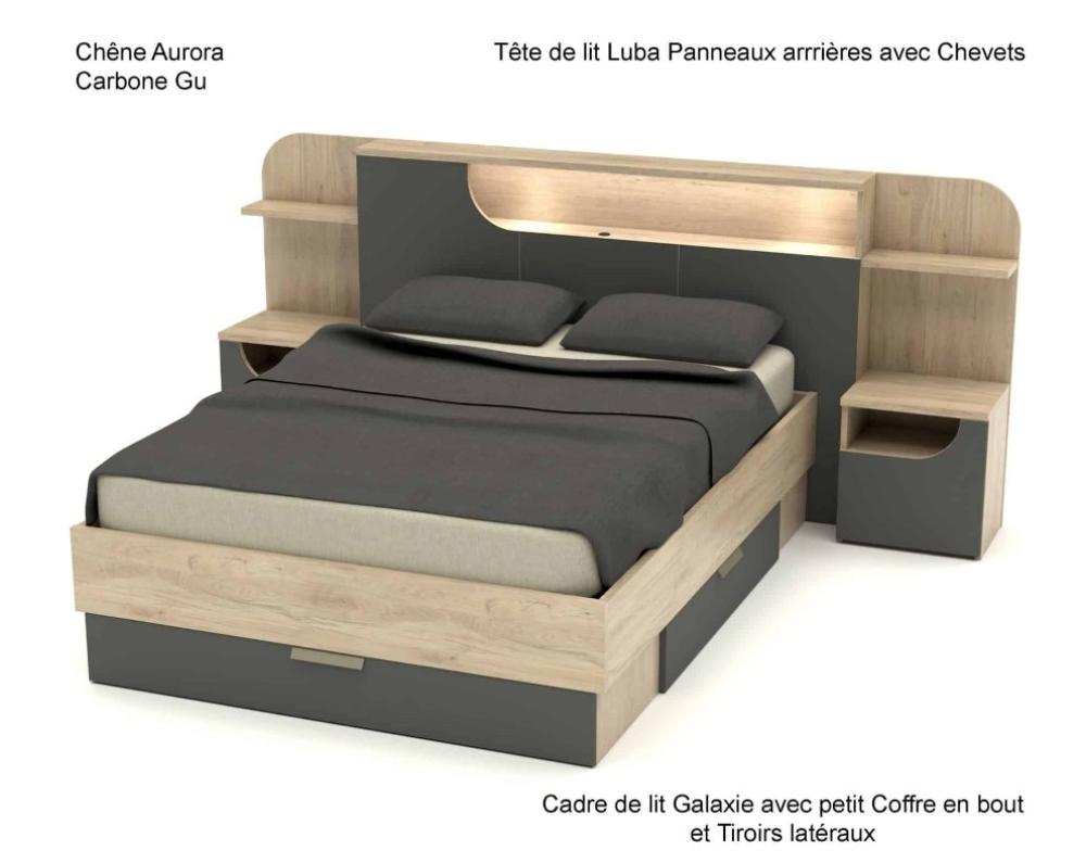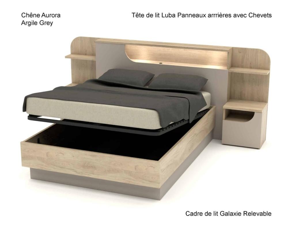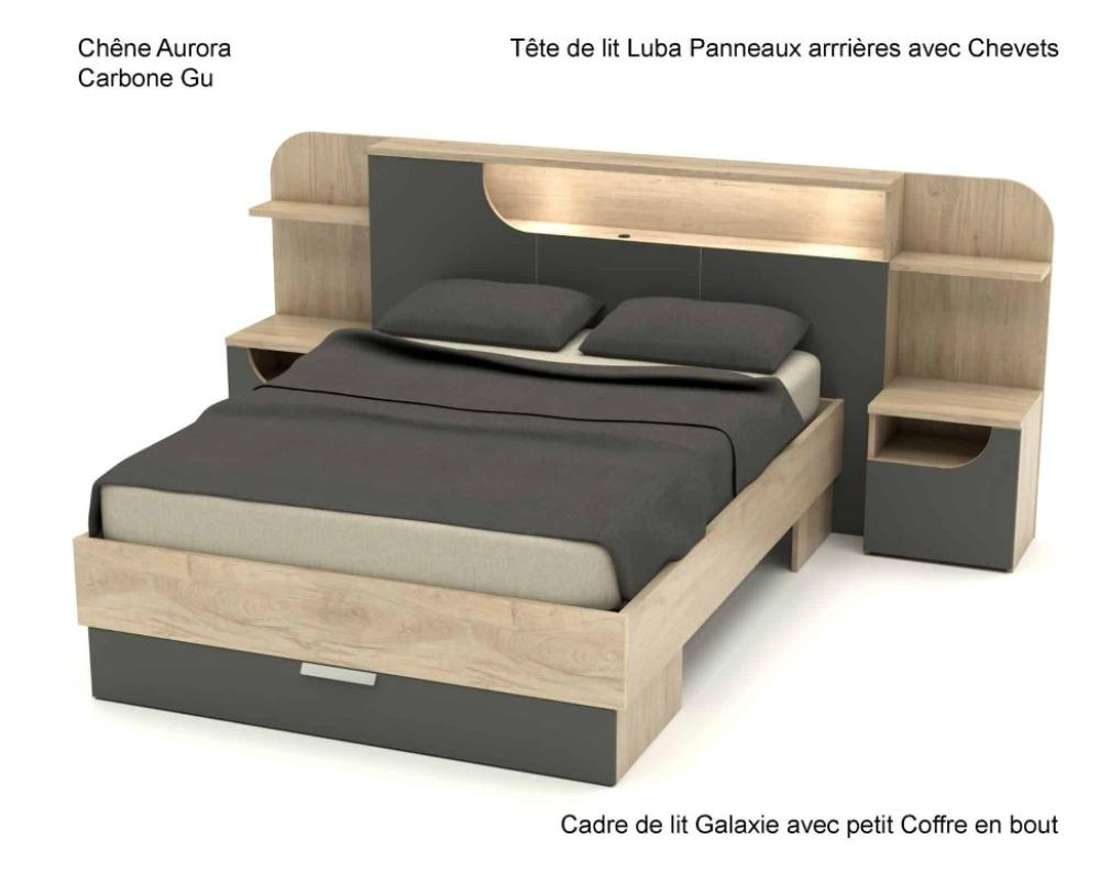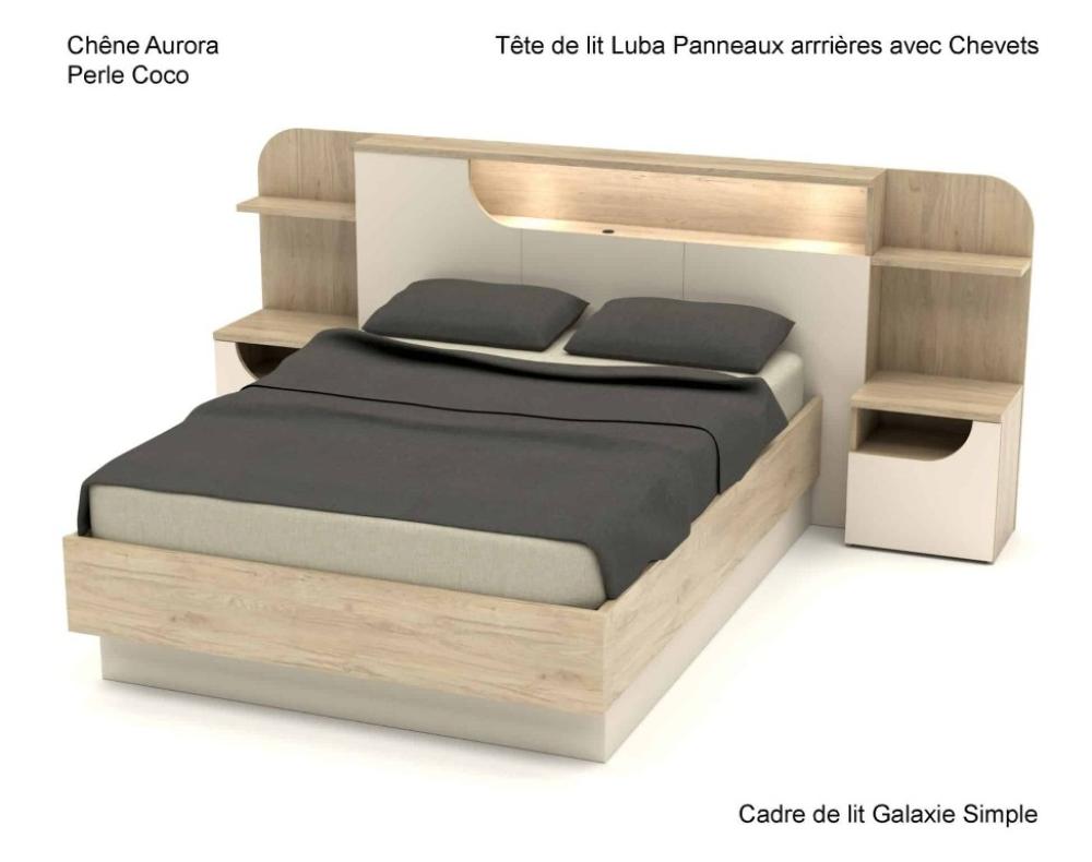 Tête de lit Luba avec Panneaux arrières et Chevets :