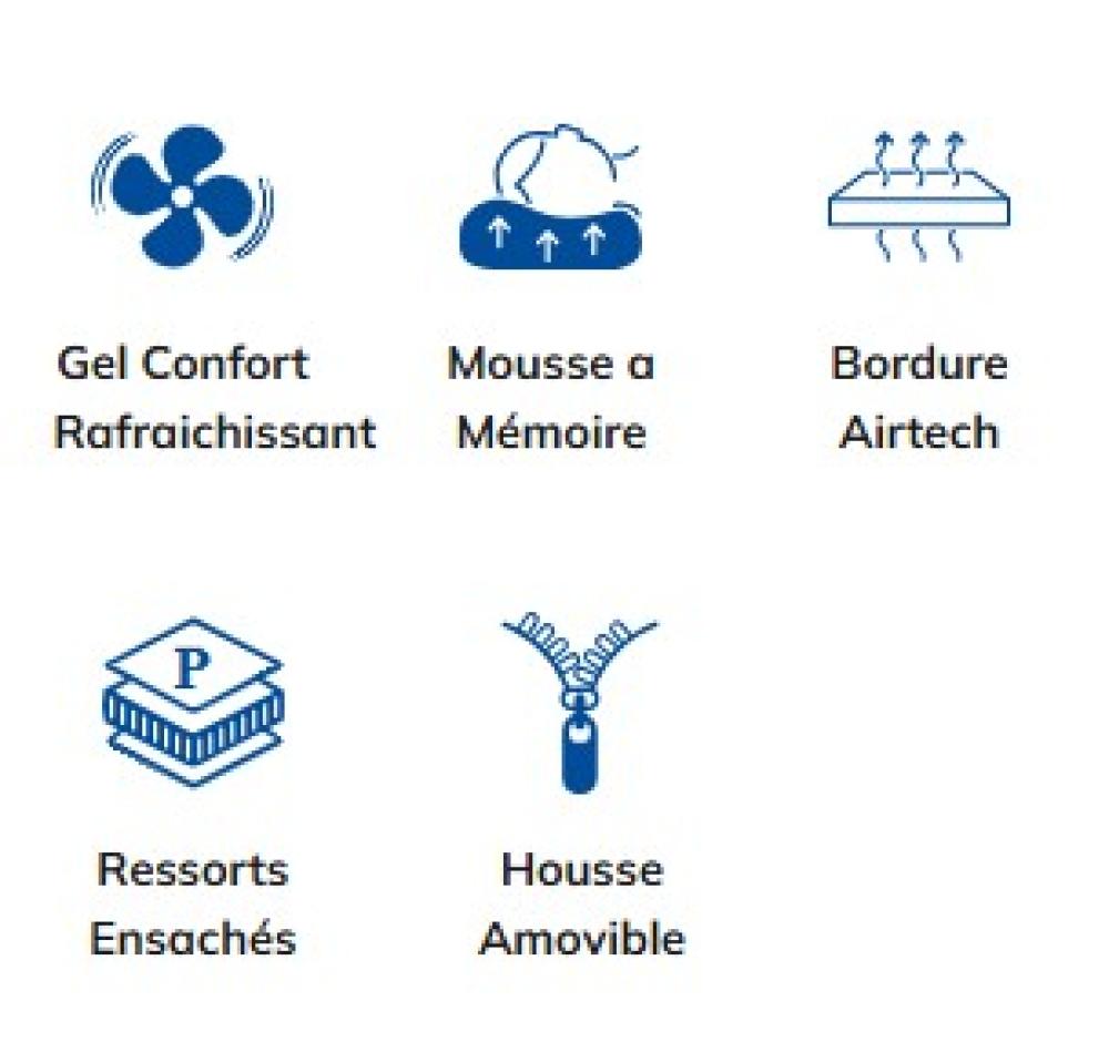 Un gel rafraîchissant a été mélangé à notre mousse viscoélastique pour créer une surface de sommeil aérée qui s'adapte à vous. (2 cm)