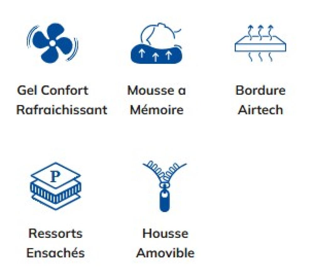 Un gel rafraîchissant a été mélangé à notre mousse viscoélastique pour créer une surface de sommeil aérée qui s'adapte à vous. (2 cm)
