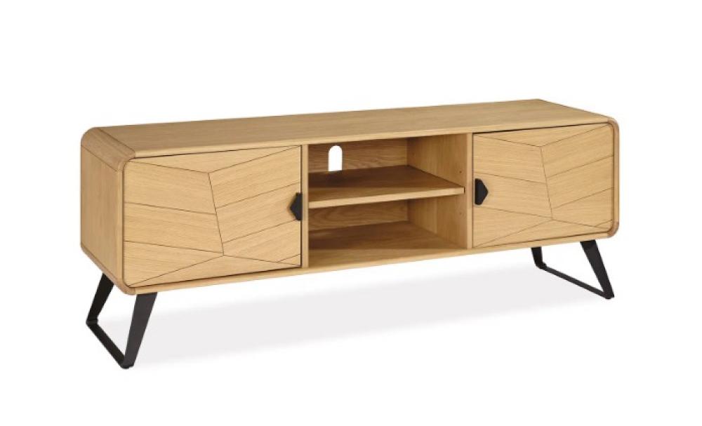 Le meuble TV Hifi 165 cm Tokyo affirme son style avec son décor façon chevron, mis en valeur par un placage chêne chaleureux et des arrondis en bois massif. Ses lignes équilibrées s’intègrent parfaitement dans un salon de mobilier contemporain, en dialogue avec une table de salon, une enfilade en bois ou un fauteuil de salon aux formes modernes. Son piètement en fer finition époxy lui confère une stabilité discrète et élégante.