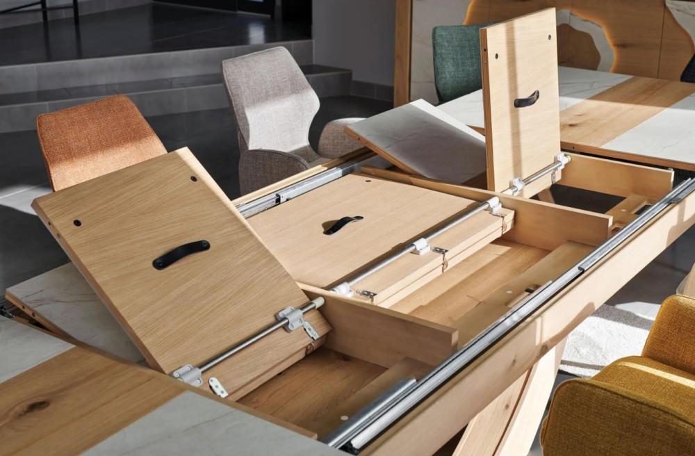 Table en 220x110 ouverte 390 avec allonges en portefeuille intégrées